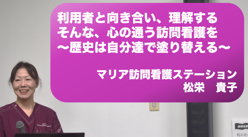 KCG10月度定例セミナーの講師は、マリア訪問看護ステーション 代表の松栄貴子(まつえ たかこ)さんです。